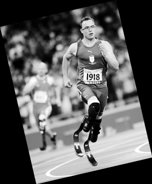 和健全人相比,他们很不幸。比如连夺3金的南非“刀锋战士”奥斯卡·皮斯托瑞斯生来缺少腓骨和踝骨,11个月大时便被截掉了膝盖以下的腿部;继雅典7金辉煌后又在北京拿下4枚游泳金牌的美国姑娘艾琳·波波维奇先天软骨发育不全、身高只有1米34;成功蝉联男子三级跳远和跳远冠军的中国军人李端因为一个过期灭火器的意外爆炸,12年来眼前都是一片漆黑……他们都没有轻易地被不幸所击垮,怎样的残缺都无法阻止他们超越自我、超越极限。