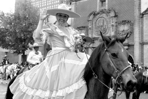 | 16日,在墨西哥首都墨西哥城街头,一名女骑手身着盛装。当日,墨西哥城的宪法广场举行阅兵式,庆祝墨西哥第198个独立日。 新华社记者马国强摄 |