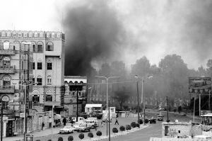 至少16人死亡 9月17日,位于也门首都萨那的美国驻也门大使馆上空浓烟弥漫。美国驻也门大使馆当天上午遭到汽车炸弹和武装人员袭击,已造成至少16人死亡。 新华社/路透
