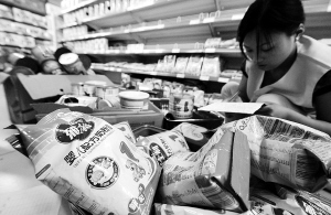 9月17日,合肥一家小型超市的工作人员正在对刚刚撤下架的婴幼儿配方奶粉进行登记。 新华社记者 陈晔华摄