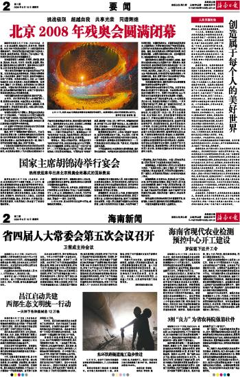 海南日报 要 闻 002 2008-09-181 2008年09月18日 星期四