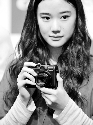 ←9月17日,日本演员苍井优在东京展示佳能新型便携式数码相机Powershot G10。这款便携式数码相机配置了1470万像素的CCD传感器和最大光圈为2.8的广角变焦镜头,将于今年11月份正式投放市场。 新华社/法新