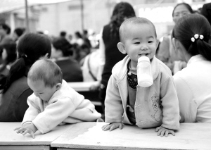 | 现在许多孩子都用塑料奶瓶喝奶。 新华社记者 聂建江 摄 |