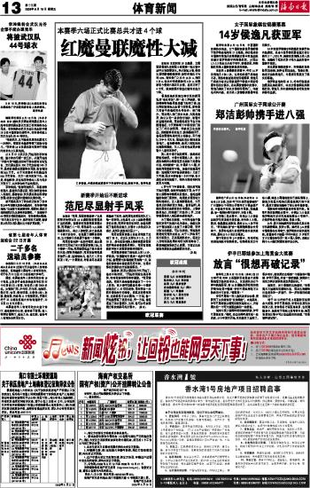海南日报 体育新闻 013 2008-09-191 2008年09月19日 星期五