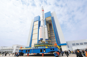 经过1个多小时的行驶,船箭塔组合体安全运抵发射架,活动发射平台自动对中锁定。