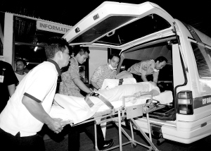 9月20日,一名受伤乘客被送往印度尼西亚巴厘岛首府登巴萨的一所医院。当日,台湾中华航空公司CI687航班在从台北飞往巴厘岛途中遭遇强气流,导致机上至少有8人受伤,其中6人伤势较重。 新华社/法新