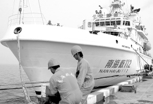 | 9月21日,勤务人员为准备出征的“南海救112”轮解开缆绳。 新华社发 |