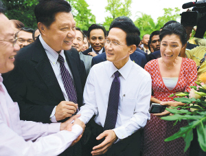 泰国民调显示 多数人支持新总理 泰国易三仓大学民意调查中心9月19日-20日在曼谷及其附近地区展开的最新一项调查显示,泰国新总理颂猜的民众支持率目前高达71.5%,而对颂猜出任总理表示不支持的占28.5%。共有2716人参与了调查。这是泰国新当选总理颂猜(中)在曼谷家中的资料照片(2008年9月18日摄)。 新华社记者 陈铎 摄