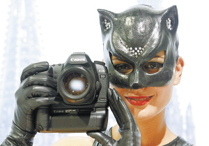 9月22日,一名模特在将要开幕的德国科隆影像博览会上展示佳能公司的EOS 5D MarkII型数码单反相机。2008世界影像博览会将于9月23日在科隆开幕,并持续至28日。 新华社/路透