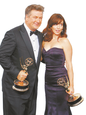 | 左上图:亚历克·鲍德温和蒂娜·菲(右)凭借在电视剧《我为喜剧狂》中的表现而分别获得喜剧类最佳男女主角奖。 新华社/路透