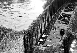 | ↑南泰鳄鱼湖设施破旧,一条供游人行走参观鳄鱼的桥,早已无法使用。