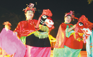 | 在三亚湾路的海月广场,来自河南的“候鸟老人”表演扭秧歌。 本报记者 李英挺 摄 |