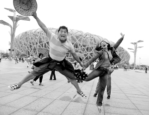 | 中外观众热情不减,“鸟巢”前拍照留念。 新华社发