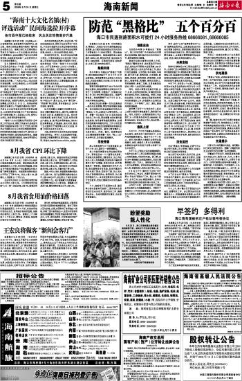 海南日报 海南新闻 005 2008-09-241 2008年09月24日 星期三