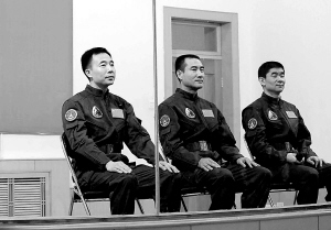 | 执行神七飞行任务的航天员翟志刚(中)、刘伯明(右)、景海鹏。 新华社发 |