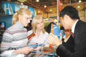 | 莫斯科市民和旅游商对三亚展台的旅游产品兴趣十足。