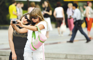 | 外国游客在三亚观光旅游。 本报记者 张杰 摄 |
