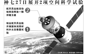 关节点六:出舱取实验材料。头先脚后,是航天员出舱的“标准动作”。按照计划,出舱航天员半个身子探出去后,首先要对着推进舱上的摄影头“打招呼”,然后取下放置在轨道舱外壁上的固体润滑材料,递给舱里的航天员。固体润滑材料是在飞船发射前安装在飞船舱壁上的,至航天员出舱取回时,材料预计共在外太空暴露40个小时以上。国外经验表明,暴露40小时以上即可获得试验效果。