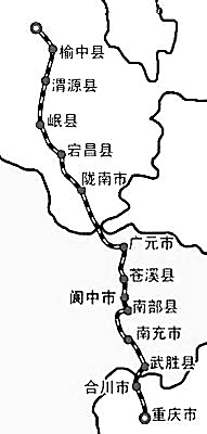 兰渝铁路北起甘肃省兰州市,途经甘肃省定西市、陇南市几个县和四川省广元、南充,南至重庆市合川、北碚。兰渝铁路为新建双线铁路,全长820公里(另外修建南充经广安至高兴单线铁路95公里),其中甘肃境内段长435公里。