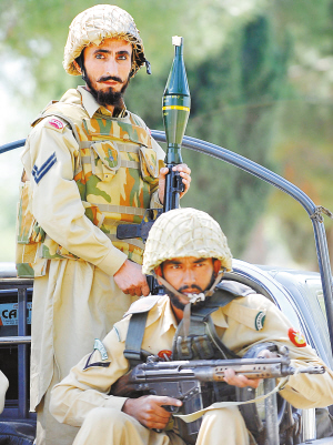 9月26日,巴基斯坦安全部队成员在西北部的巴焦尔地区巡逻。巴基斯坦军方当天说,巴安全部队自8月6日以来已在巴焦尔部落地区打死1000多名塔利班武装人员,其中包括5名塔利班高级指挥官。 新华社/路透