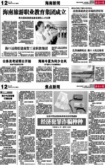 海南日报 海南新闻/焦点新闻 012 2008-09-281 2008年09月28日 星期日