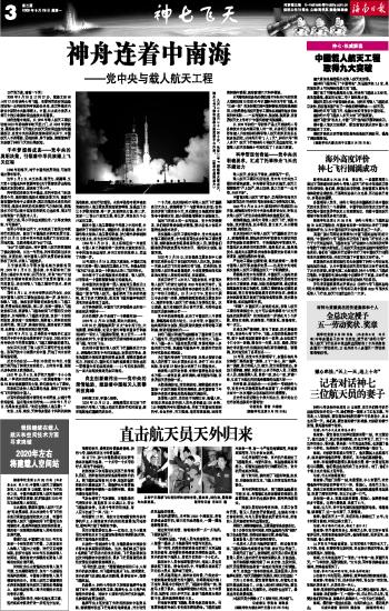 海南日报 神七飞天 003 2008-09-291 2008年09月29日 星期一