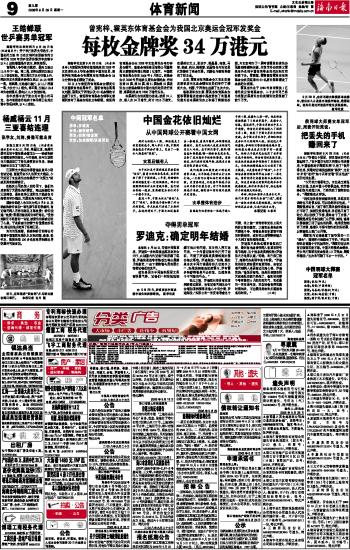 海南日报 体育新闻 009 2008-09-291 2008年09月29日 星期一