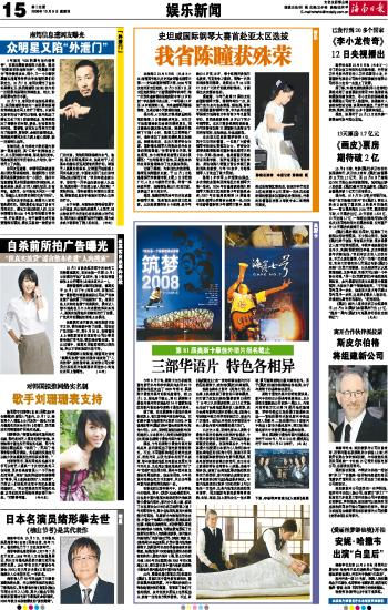 海南日报 娱乐新闻 015 2008-10-091 2008年10月09日 星期四