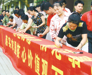 | 新中农场组织开展落实农垦核心价值观签名活动。
