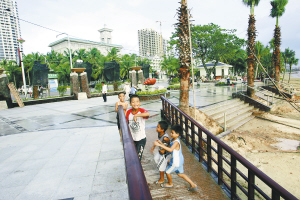 | 几位小朋友在新建成的友谊路广场上玩耍。 本报记者 程范淦 摄
