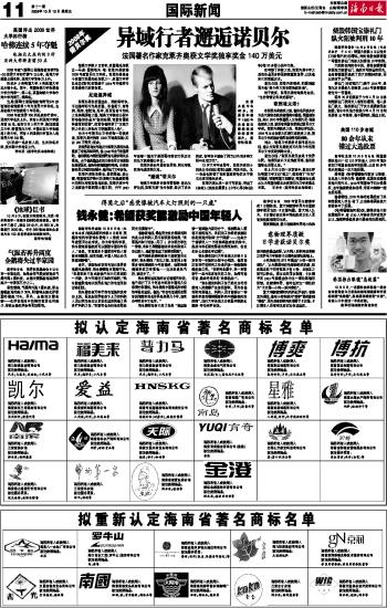 海南日报 国际新闻 011 2008-10-101 2008年10月10日 星期五