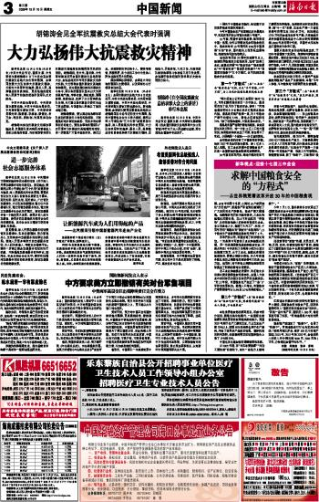 海南日报 中国新闻 003 2008-10-101 2008年10月10日 星期五