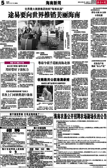 海南日报 海南新闻 005 2008-10-101 2008年10月10日 星期五