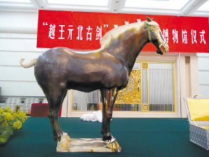 单霁翔在讲话中表示,此次入藏海南省博物馆的三件文物,都属于国家近年来从海外巨资征集的珍贵文物中历史、艺术、科学价值最突出的藏品,如“越王亓北古剑”以复合金属嵌铸剑身,是国内同类越王剑中仅有孤品,唐三彩马和宋青白釉花口凤首壶,则分别代表了唐宋时期我国陶瓷工艺水平,相信这些文物将丰富海南省博物馆馆藏,提升海南省博物馆陈列水平,使该馆成为海南省文化建设的亮点和名片,为建设国际旅游岛的文化品牌发挥积极作用。