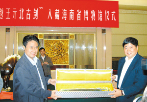 罗保铭说,今年是海南建省办经济特区20周年,在省博物馆开馆之际,国家文物局决定将越王亓北古剑等国家级珍品入藏我省博物馆,必将极大地丰富省博物馆藏品,提升海南的文化底蕴和文物品位,对于海南建设国际旅游岛和促进我省文化旅游产业的发展,都具有重要意义。我们将继续加大投入,全力发掘和征集文物精品,提高服务水平和馆藏藏品的品位。