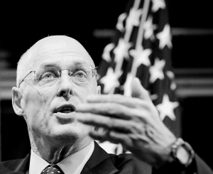 10月10日,美国财长保尔森表示,美国政府正在推进直接购买金融机构股份计划,并且这一计划将向范围广泛的金融机构开放。 新华社记者 张岩 摄