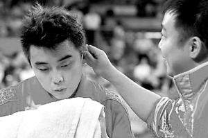 | 刘国梁一直对王皓(右)宠爱有加,没想到爱将会做出如此出格的糗事。图为刘国梁在赛场指导王皓的资料照片。 小新发