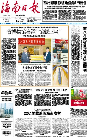 海南日报报业集团旗下媒体: 海南日报 | 南国都市报 | 南海网 | 南岛晚报 | 证券导报 加入收藏 | 设为首页