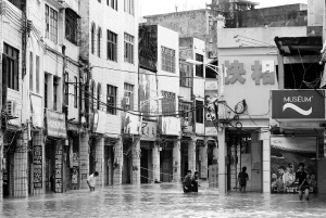 10月13日,文昌市文城镇文南街,300多米的街道洪水齐腰深,平日热闹的商业老街成了泽国。 本报记者 王凯 摄