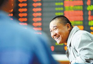 | 10月13日,股民在北京一家证券营业部关注股市行情。当日,沪深股市先抑后扬,出现反弹,股民露出了笑容。 新华社发 |