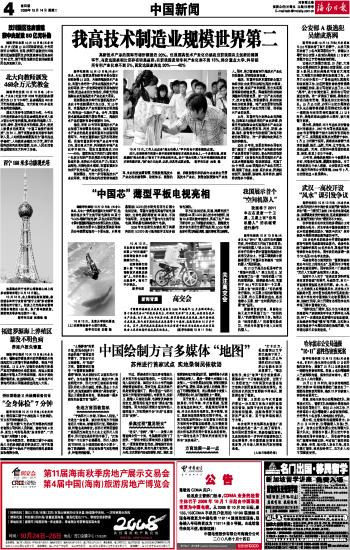 海南日报 中国新闻 004 2008-10-141 2008年10月14日 星期二