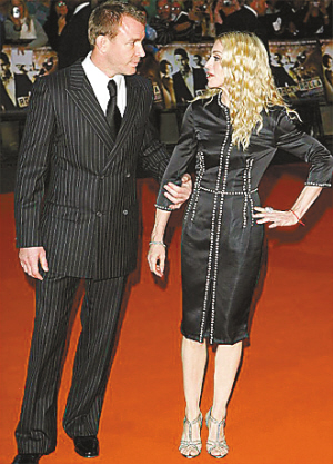 据新华社北京10月15日电 英国《太阳报》日前报道,歌星麦当娜和丈夫盖伊·里奇很快将宣布分道扬镳,麦当娜和里奇已“无法继续生活在一起”,“他们不想再装作婚姻幸福的样子”。 今年50岁的麦当娜和40岁的里奇已维持了8年的婚姻,目前居住在伦敦。近几个月来,不断有麦当娜和里奇要分手的传闻。今年夏天,有报道说,麦当娜已在曾为前甲壳虫乐队成员保罗·麦卡特尼处理离婚事务的律师菲奥娜·沙克尔顿处登记,准备申请离婚。 右图:麦当娜上月还亮相了丈夫盖伊·里奇新片《摇滚帮》的首映式