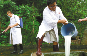 [1] 防疫 10月15日,文昌市文城镇霞洞村市疾控中心和镇卫生院的防疫人员正在对水井进行消毒。 本报记者 王凯 摄 [2] 抢修 10月15日,工作人员在海口市南海大道维修被雨水冲坏的排水管道。 本报记者 林萌 摄 [3] 抢收 10月15日,海口市美兰区灵山镇东头村民正在抢收受灾的叶菜。 本报记者 李英挺 摄