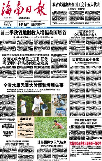 海南日报 首版 001 2008-10-161 2008年10月16日 星期四