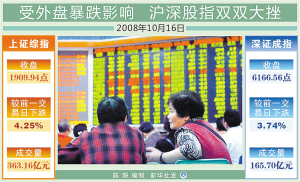受此影响,周四沪深股市双双跳空低开,再度留下了一个下降缺口,深圳综合指数还创出了年内新低。其中,沪综指最低探至1901.50点,收市报1909.94点,跌4.25%,深成指收市报6166.56点,跌3.74%。两市共成交529亿元,较昨日同比放大超过两成。
