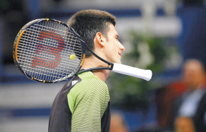 马德里大师赛 德约科维奇遭淘汰 10月16日,德约科维奇在马德里网球大师赛单打第三轮比赛中,以0:2负于克罗地亚选手卡洛维奇,无缘下一轮。 新华社发