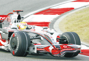 F1中国站练习赛 汉密尔顿领先 10月17日,汉密尔顿在上海举行的F1中国大奖赛两次练习赛中均名列榜首。图为迈凯轮车队车手汉密尔顿在练习赛中。 新华社发