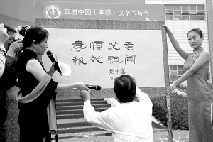 10月20日,中国硬笔书法协会主席庞中华进行书写表演。 当日,湖北省孝感市和中国硬笔书法协会举办的首届中国(孝感)汉字书写节在孝感湖北职业技术学院文昌广场举行,来自社会各界的万名硬笔书法爱好者参加了现场书写活动。 新华社发(代纯 摄)