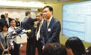 10月20日,香港交易所官员在黄金期货开市仪式上介绍情况。 新华社发