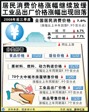 同期,我国居民消费价格同比涨幅高于去年,但回落之势明显:居民消费价格涨幅自5月份以来已连续5个月回落,9月份同比涨幅已回落到4.6%,控制通货膨胀取得明显成效。